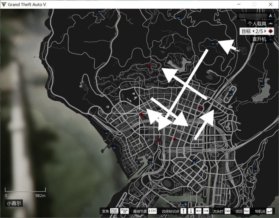 开直升飞机来到这里,注意不要接近上方的目标点,绕点远路都可以。一旦触发的话其逃跑难度就大大上升了
