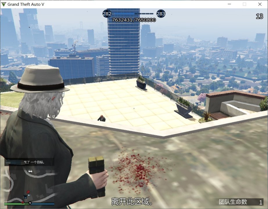 5.开飞机去最后一个点,把飞机停在房顶上,等目标躲在下方角落里扔爆炸物击杀即可